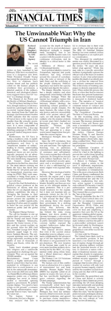 The United States finds itself in an unwinnable position. It has launched a war based on the fantasy of regime change through air power, ignoring military realities and the profound lessons of history. It confronts a nation with a deep civilizational memory and a regime that, despite its unpopularity, commands a formidable and resilient security apparatus . The pursuit of “victory” through a campaign that loosens ethical constraints on warfare will only lead to greater human tragedy, symbolized by the countless civilian lives, young and old, that will be caught in the crossfire .